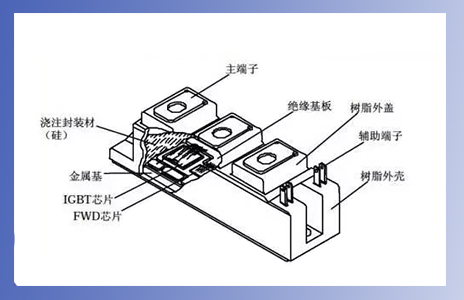 在實(shí)際應(yīng)用中,IGBT模塊是由IGBT芯片與FWD(續(xù)流二極管芯片)通過特定的電路橋接封裝而成的模塊化半導(dǎo)體產(chǎn)品,具有節(jié)能、安裝維修方便、散熱穩(wěn)定等特點(diǎn)。IGBT模塊內(nèi)部的粘合芯片模板需要用到NTC熱敏芯片來控制它的溫度,避免溫度過高而損壞模塊的正常工作。