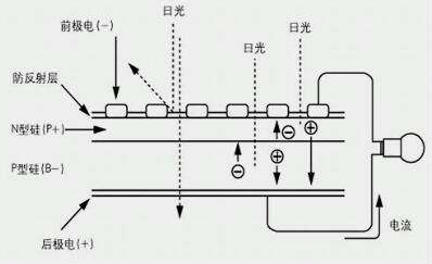 太陽能電池發(fā)電的原理:太陽能電池是利用半導體材料的光電效應(yīng),將太陽能轉(zhuǎn)換成電能的裝置.光生伏特效應(yīng):假設(shè)光線照射在太陽能電池上并且光在界面層被接納,具有足夠能量的光子可以在P型硅和N型硅中將電子從共價鍵中激起,致使發(fā)作電子-空穴對。界面層臨近的電子和空穴在復(fù)合之前,將經(jīng)由空間電荷的電場結(jié)果被相互分別。電子向帶正電的N區(qū)和空穴向帶負電的P區(qū)運動。經(jīng)由界面層的電荷分別,將在P區(qū)和N區(qū)之間發(fā)作一個向外的可測試的電壓。此時可在硅片的兩邊加上電極并接入電壓表。對晶體硅太陽能電池來說,開路電壓的典型數(shù)值為0.5~0.6V。經(jīng)由光照在界面層發(fā)作的電子-空穴對越多,電流越大。界面層接納的光能越多,界面層即電池面積越大,在太陽能電池中組成的電流也越大。